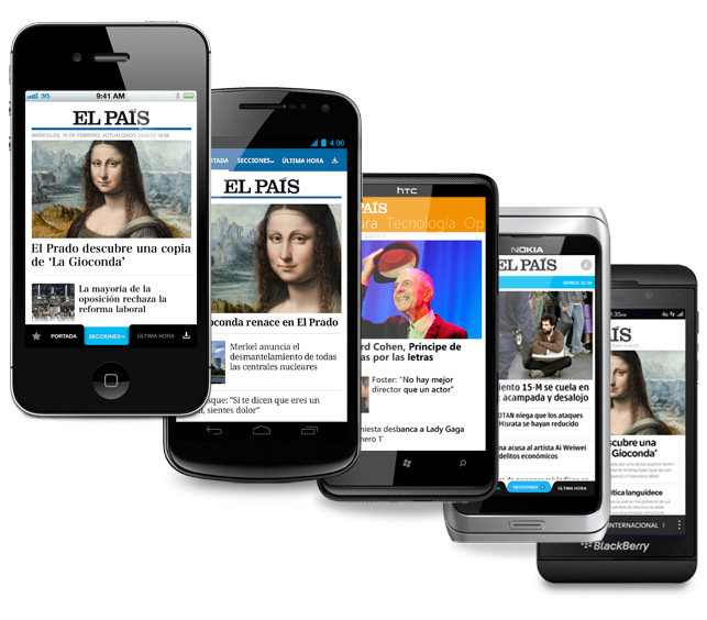 Design of most of the apps for EL PAIS (Android phone and tablet, iPhone, iPad, Nokia Symbian, Windows Phone, Blackberry).